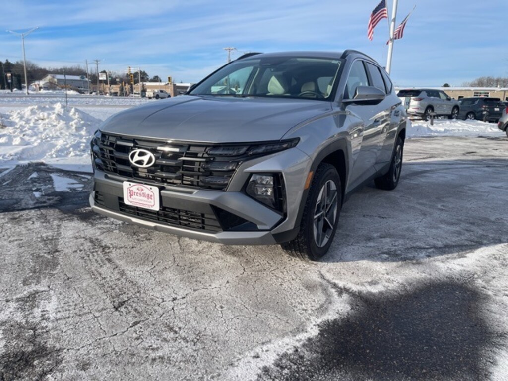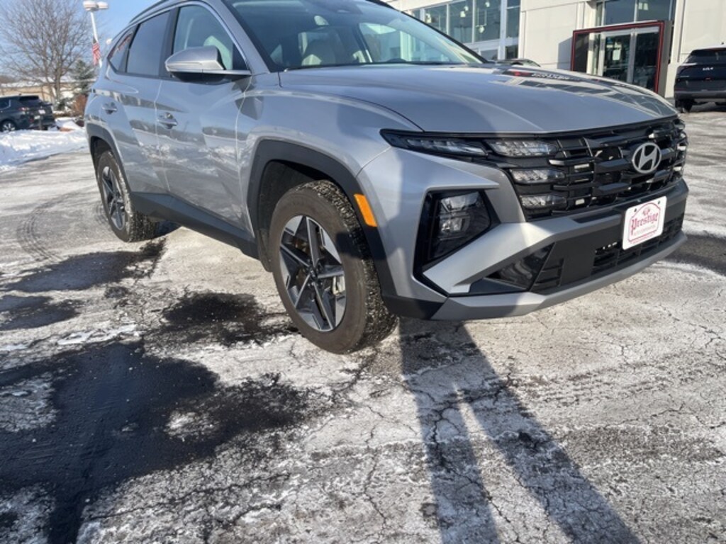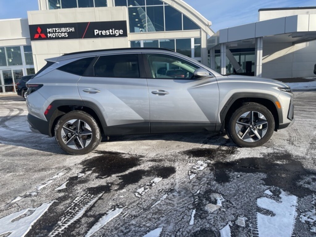 Shimmering Silver 2025 Hyundai Tucson SEL Convenience AWD 8-Speed Automatic with SHIFTRONIC 2.5L I4 DGI DOHC 16V LEV3-SULEV30 187hp **CLEAN VEHICLE HISTORY REPORT**, **LOCAL TRADE IN**, **ONE OWNER**, 6 Speakers, Bumpers: body-color, Delay-off headlights, Driver door bin, Front Center Armrest, Front reading lights, Illuminated entry, Low tire pressure warning, Navigation System, Occupant sensing airbag, Option Group 01, Outside temperature display, Overhead airbag, Overhead console, Passenger door bin, Radio data system, Rear reading lights, Rear seat center armrest, Split folding rear seat, Tachometer.