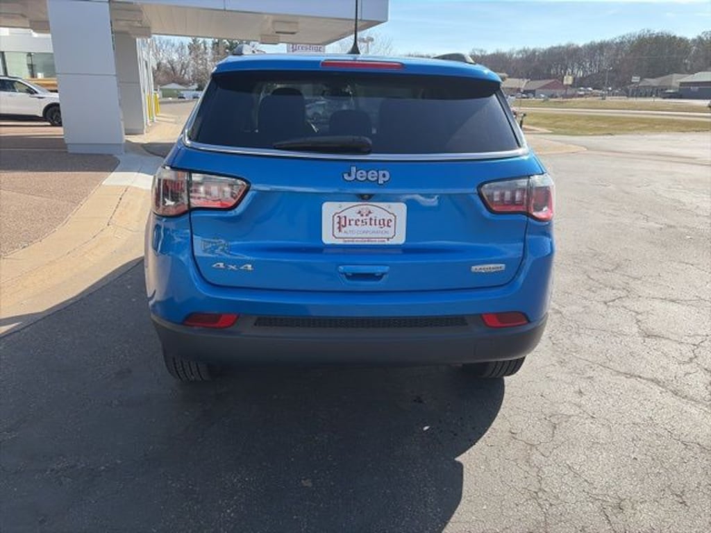 Laser Blue Pearlcoat 2020 Jeep Compass Latitude 4WD 9-Speed 948TE Automatic 2.4L I4 115V Auxiliary Power Outlet, All-Season Floor Mats, Alloy wheels, Anti-whiplash front head restraints, Bumpers: body-color, Cluster 7.0" Color Driver Info Display, Compass, Delay-off headlights, Driver door bin, Driver vanity mirror, Front anti-roll bar, Front Center Armrest w/Storage, Front reading lights, GPS Antenna Input, Illuminated entry, Outside temperature display, Overhead airbag, Overhead console, Passenger door bin, Passenger vanity mirror, Power 8-Way Driver/Manual 6-Way Passenger Seats, Premium Cloth/Vinyl Bucket Seats, Radio: Uconnect 4 w/7" Display, Rear anti-roll bar, Rear seat center armrest, Rear window wiper, Reversible Carpet/Vinyl Cargo Mat, Roof rack: rails only, Split folding rear seat, Variably intermittent wipers, Windshield Wiper De-Icer.