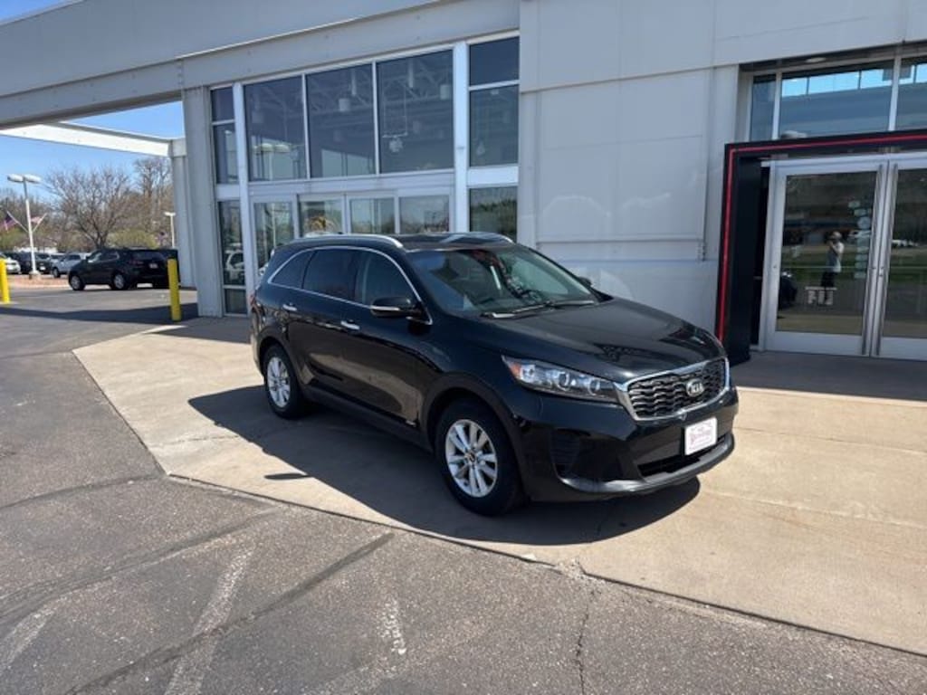 Ebony Black 2019 Kia Sorento LX AWD 8-Speed Automatic V6 **LOCAL TRADE IN**, 3rd Row Air Conditioning, Auto-Dimming Rear-View Mirror, Heated Front Seats, Leather Wrapped Steering Wheel & Shift Knob, LX V6 Convenience Package, Park Distance Warning-Reverse, Radio: UVO eServices, Roof Rails (Silver).