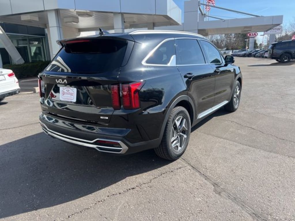 Aurora Black 2023 Kia Sorento Hybrid EX FWD 6-Speed Automatic 1.6L I4 DGI Hybrid Turbocharged DOHC 16V LEV3-ULEV70 **CLEAN VEHICLE HISTORY REPORT**, **LOCAL TRADE IN**, Delay-off headlights, Emergency communication system, Four wheel independent suspension, Front Center Armrest, Front dual zone A/C, Front reading lights, Illuminated entry, Low tire pressure warning, Occupant sensing airbag, Outside temperature display, Overhead airbag, Overhead console, Rear reading lights, Rear window wiper, Roof rack: rails only, Speed-sensing steering, Split folding rear seat, Tachometer.